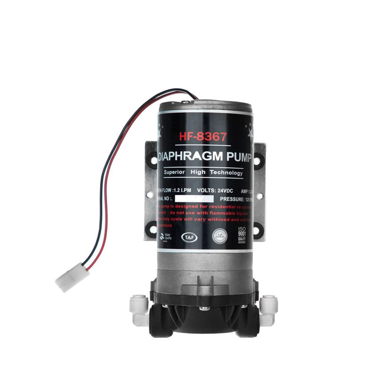 پمپ تصفیه آب یکی دیگر از مهم ترین اجزا و قطعات دستگاه تصفیه آب است. این قطعه در دستگاه های اسمز معکوس کاربرد دارد. به دلیل اینکه فیلتر ممبران برای فیلتراسیون آب نیاز به اختلاف فشار دارد، نیاز است تا آب ورودی دارای فشار مناسبی باشد. این فشار توسط پمپ افزایش فشار ایجاد میشود. این فشار پمپ باعث میشود تا آب با فشار به منافذ ریز فیلتر ممبران وارد شود و از آنها عبور کند. در صورت نبودن این فیلتر هدر رفت بسیاری را شاهد خواهیم بود و آب بسیار ضعیف از ممبران رد شده و کاملا کارایی نامناسبی خواهد داشت.