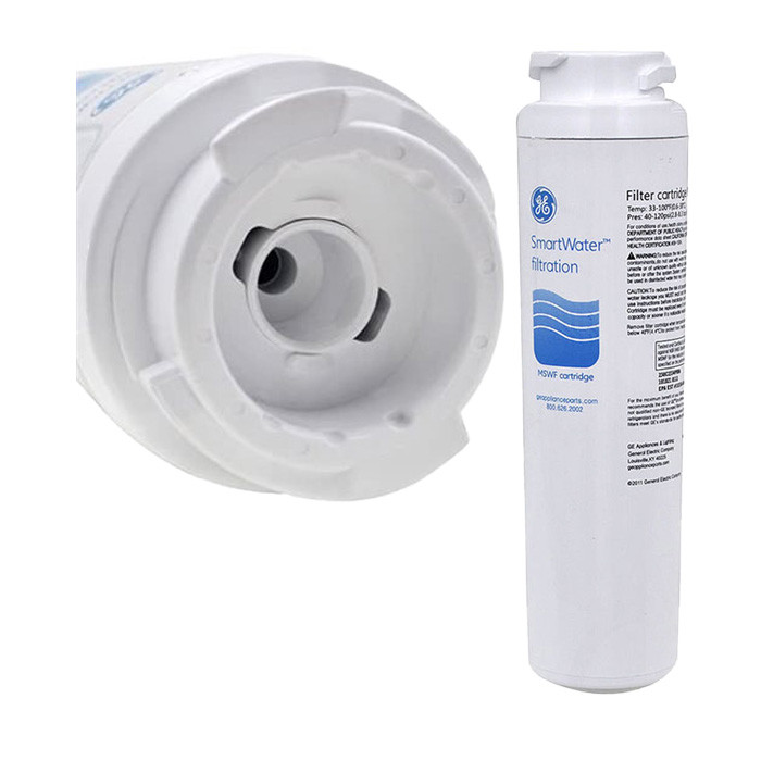 فیلتر داخلی یخچال جنرال الکتریک مدل MSWF از جمله فیلترهای بلند با سر پهن میباشد که برای یخچال های ساید بای ساید سری GE و یخچال هایی است که فریزر آنها در پایین قرار گرفته است مناسب میباشد. این فیلتر قدرتمند و با کیفیت ساخت کشور آمریکا و دارای استاندارد NSF است. فیلتر موشکی و استوانه ای اسمارت واتر Smartwater جنرال الکتریک مناسب یخچال های CE جنرال است که در آنها میبایست از فیلترهای بلند استفاده کرد.